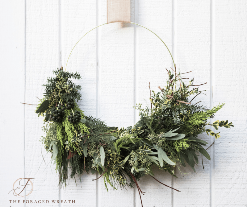 Learn to make a gorgeous winter, hoop-style wreath with local artisan and wreath expert, Erin Riddle from The Foraged Wreath.